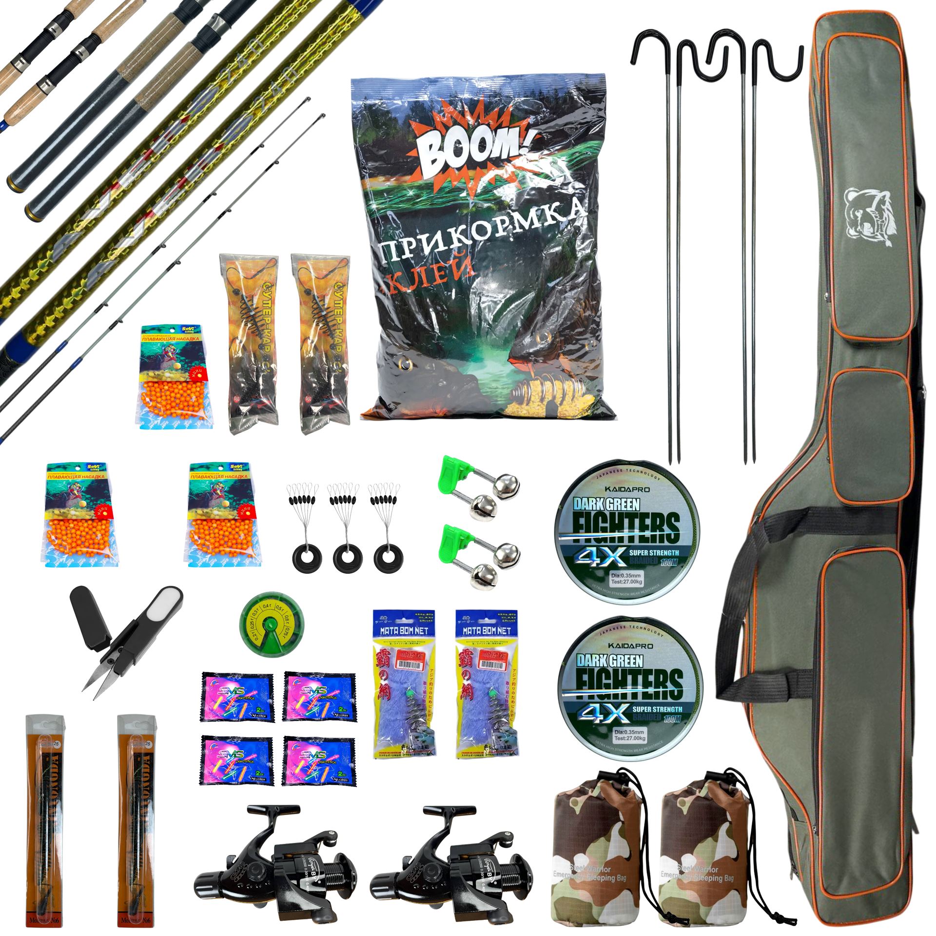 - ЗРУЧНІСТЬ — Всі снасті компактно складені у міцний камуфляжний чохол.